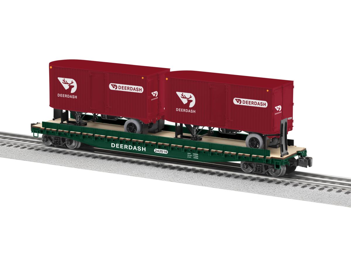 Deer Dash 50′ TOFC Flatcar w/2 20′ Trailers