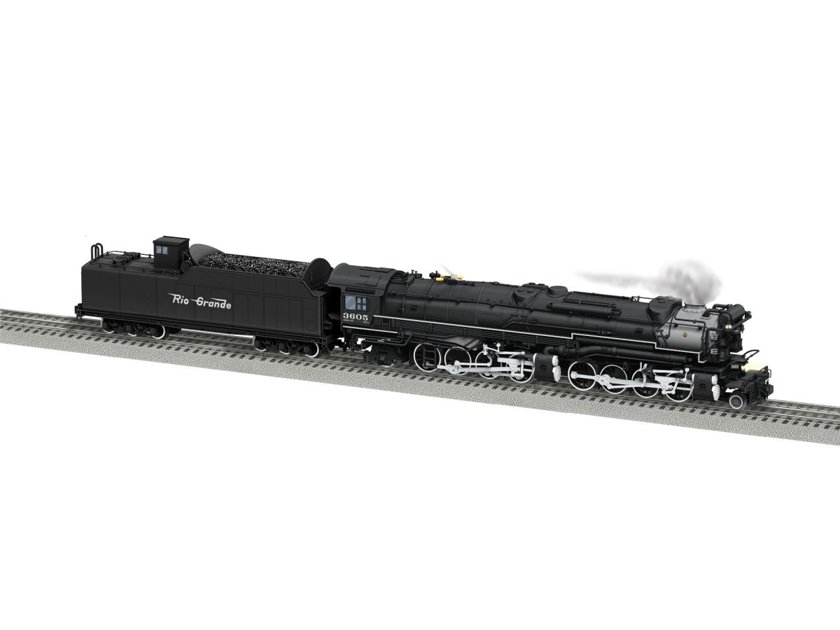 In need of larger power but strapped with smaller tunnels, the Chesapeake and Ohio ordered a relatively novel group of 25 simple-expansion 2-8-8-2 locomotives from Alco in 1923. Compound Mallet locomotives, which used steam exhausted from the first pair of pistons to power a second, were nothing new on the C&O or elsewhere. But using steam directly from the boiler to power all four pistons had only been tried a few times – and not on a production locomotive. The single expansion offered more power and reduced the size of the large pistons needed in a Mallet. But it also required a larger boiler to produce enough steam for what was essentially, two steam locomotives. Keeping this within tight clearances lead to the locomotives’ other distinctive feature – a smokebox crowded with appliances like air pumps, feedwater heater and even the bell which couldn’t fit anywhere else and make it through a tunnel intact. It became a C&O standard on many locomotives for years to come. Although Alco called them “Chesapeakes,” crews knew them as “Simple Simons” and they were generally well liked. Baldwin delivered 20 more in 1926. One area the original H-7s had come up lacking was tender capacity. The new units arrived with 16,000 gallon Vanderbilt tenders to help quench the thirsty boilers. Later, even larger tenders were added to most units. But Simons’ rule on the mountain was cut short by the arrival of even larger 2-10-4 and 2-6-6-6 Alleghenies in the 1930s and 40s. In 1943, three were sold to the RF&P for service on Potomac Yard’s hump. Union Pacific picked up 30 in 1945. Some were rebuilt, others were retired retaining most of their C&O look. Those that remained on the C&O mostly found their way into hump yard service as well – sporting much smaller tenders again. After nearly a decade’s absence from our catalog, Lionel is bringing back the Simple Simons! Available in new road numbers, paint schemes and tender variations, this is also the first release of these locomotives with Bluetooth control, whistle steam and all of our latest LEGACY upgrades! In addition to multiple C&O variations depicting the class from 1926 to the 1950s as well as RF&P and Union Pacific, a Rio Grande version represents a different yet strikingly similar class on that mountain road.