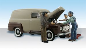 Three shade-tree mechanics discuss the automotive issues of an old panel truck.